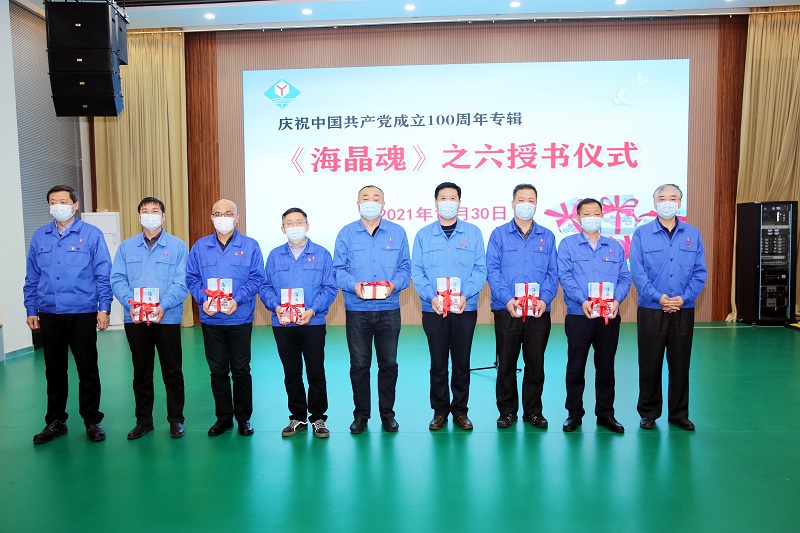 日前,由公司黨委宣傳部編輯的慶祝中國共產黨成立100周年專輯,公司企業文化叢書——《海晶魂》之六編輯完成,公司黨委舉辦《海晶魂》之六授書儀式。